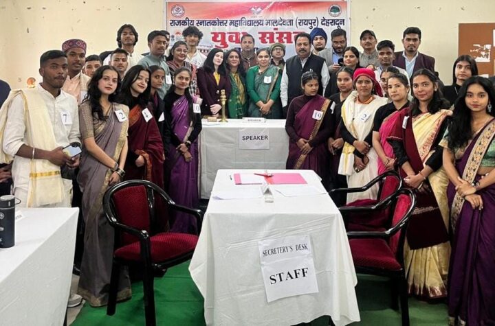आज दिनांक 26 नवम्बर 2025 राजकीय स्नातकोत्तर महाविद्यालय मालदेवता रायपुर देहरादून में युवा संसद...
