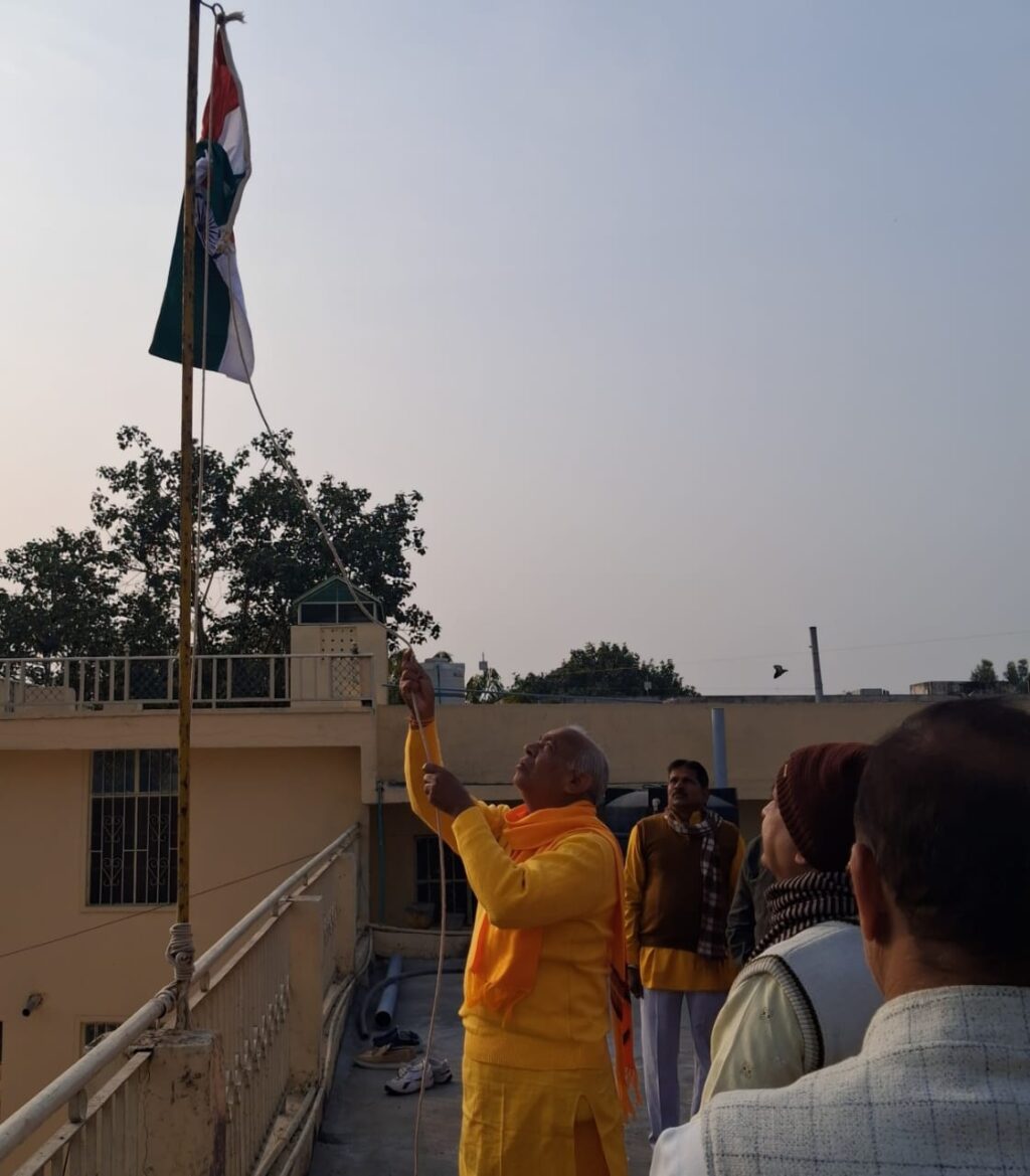 देवेंद्र सक्सेना,कोटा: गणतंत्र दिवस के अवसर पर गायत्री शक्तिपीठ कोटा में शांतिकुंज हरिद्वार द्वारा नियुक्त व्यवस्थापक श्री प्रभा शंकर दुबे ने ध्वजारोहण किया।