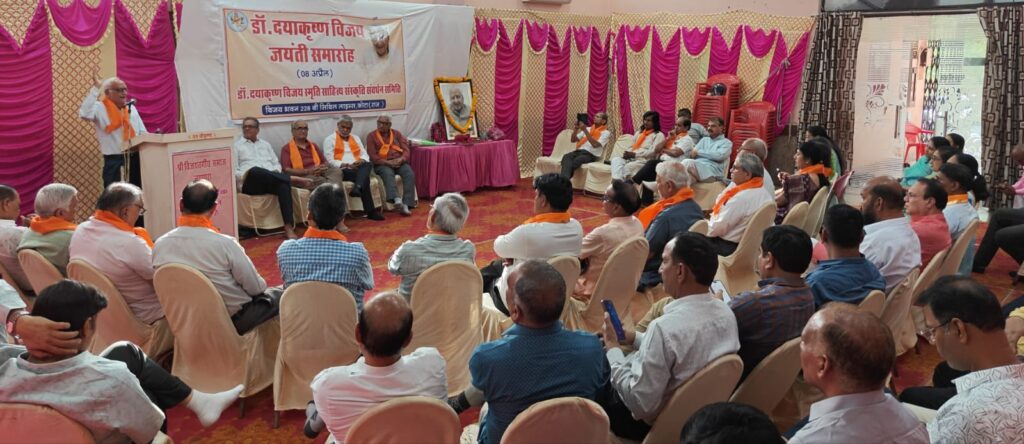 आकाशवाणी कोटा के सहायक अधिकारी रामनारायण हलधर ने डॉ दयाकृष्ण विजय के जीवन चरित्र पर प्रकाश डालते हुए कहा कि ड़ा. विजय साहित्य जगत में राष्ट्रीय स्तर के प्रमुख मनीषी रहे हैँ, उनकी रचनाओं के आलोक में भी वे लंबे समय तक याद रहेंगे। उन्हें आसानी से भुलाया नहीं जा सकेगा।