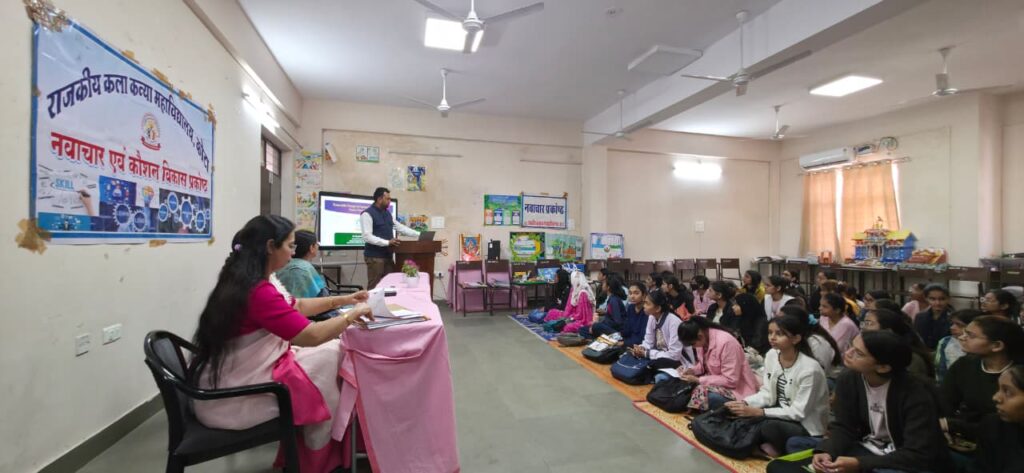 आज दिनांक 25 नवंबर 2025 को राजकीय कला कन्या महाविद्यालय, कोटा के ‘नवाचार एवं कौशल विकास प्रकोष्ठ’ तथा ‘ऊर्जा एवं हरित अंकेक्षण समिति’ के संयुक्त तत्वावधान में “नवीकरणीय ऊर्जा” विषय पर व्याख्यान का आयोजन किया गया।