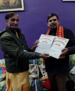 ये अभिनंदन पत्र संस्कार भारती कोटा महानगर के महामंत्री एवं मीडिया समन्वयक गायत्री परिवार कोटा के श्री देवेंद्र कुमार सक्सेना ने हरिद्वार पहुंच संजीव शर्मा को प्रदान किये।