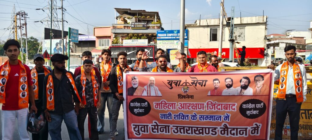 देहरादून: महिला आरक्षण विधेयक के संसद में पारित न हो पाने के विरोध में आज युवा सेना द्वारा देहरादून के तिलक रोड पर शांतिपूर्ण प्रदर्शन किया गया।