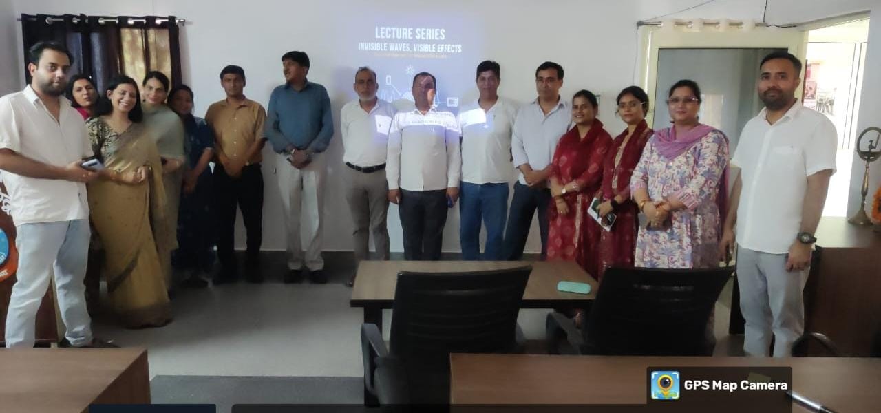 इस कार्यक्रम में, भौतिकी विभाग के प्रभारी डॉ संदीप कुमार द्वारा “अदृश्य तरंगें, दृश्य प्रभाव: इलेक्ट्रोमैग्नेटिक रेडिएशन और जीवन” (Invisible waves, visual effects: electromagnetic radiation and life) विषय पर एक प्रभावशाली प्रस्तुति दी गई। इस व्याख्यान ने शिक्षक समुदाय को इलेक्ट्रोमैग्नेटिक (विद्युत चुम्बकीय) तरंगों के विज्ञान, उनके तकनीकी उपयोग और जीवन पर पड़ने वाले प्रभावों के नवीनतम पहलुओं से अवगत कराया।
