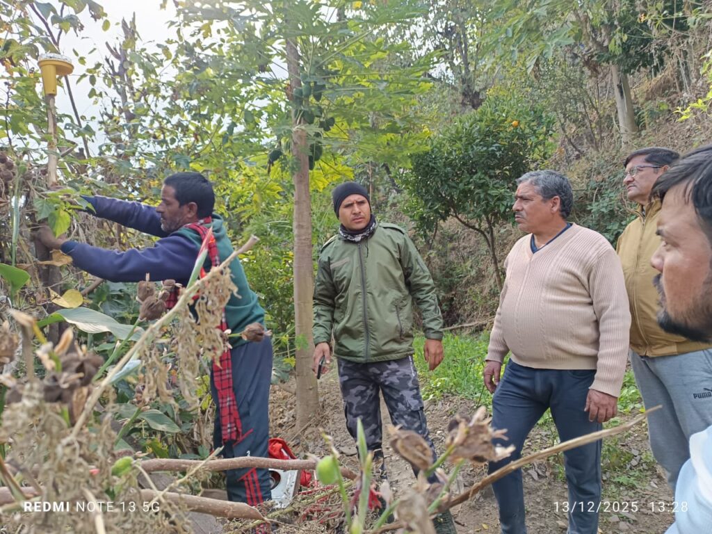 फाॅक्स लाइटें व ट्रैप कैमरा लगाते समय पूर्व उप प्रधान मस्त राम उनियाल,व विजयराम उनियाल, मूर्ति राम नौटियाल, धीरजमणी उनियाल, देवेंद्र उनियाल मौजूद रहे।