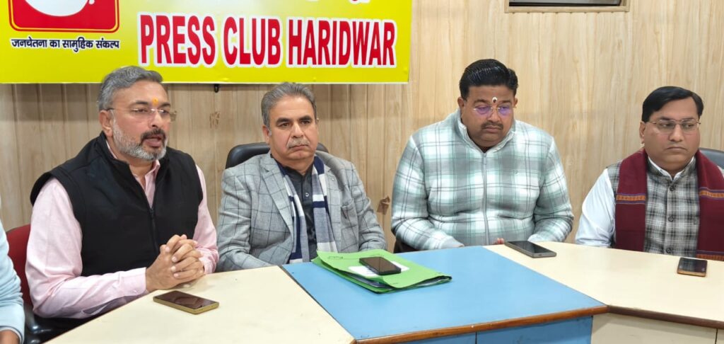 हरिद्वार, 22 दिसम्बर। भाजपा जिला अध्यक्ष आशुतोष शर्मा और पूर्व दर्जाधारी राज्य मंत्री वरिष्ठ भाजपा नेता विमल कुमार ने प्रैस क्लब में पत्रकार वार्ता कर 23 दिसंबर से शुरू हो रहे सांसद खेल महोत्सव के बारे में जानकारी दी।