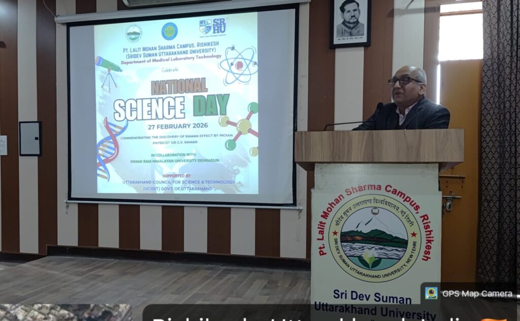 ऋषिकेश: पंडित ललित मोहन शर्मा परिसर ऋषिकेश के मेडिकल लैब टेक्नोलॉजी विभाग व उत्तराखंड राज्य विज्ञान एवं प्रौद्योगिकी परिषद (यूकॉस्ट) के तत्वावधान में आज दिनांक 27 फरवरी 2026 को राष्ट्रीय विज्ञान दिवस मनाया गया।