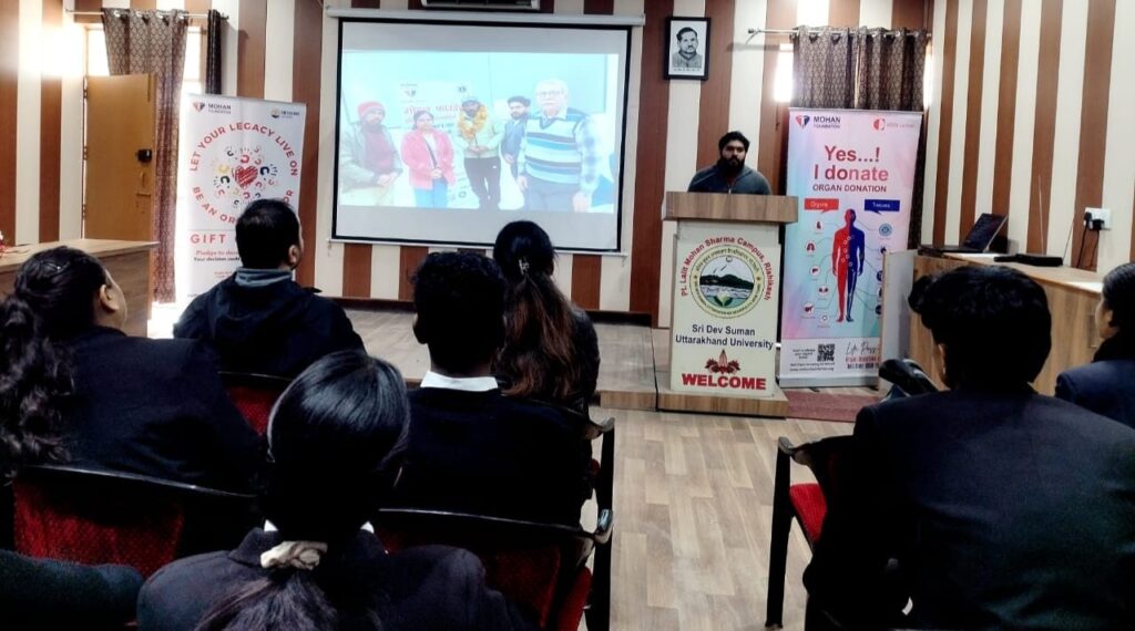 पंडित ललित मोहन शर्मा श्रीदेव सुमन उत्तराखंड विश्वविद्यालय परिसर ऋषिकेश के मेडिकल लैब टेक्नोलॉजी विभाग द्वारा अंगदान विषय पर एक महत्वपूर्ण जागरूकता कार्यक्रम का आयोजन किया गया, जिसमें एम्स ऋषिकेश एवं मोहन फाउंडेशन का सहयोग रहा।
