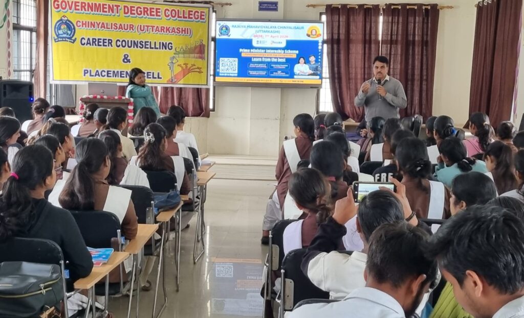 चिन्यालीसौड़: राजकीय महाविद्यालय चिन्यालीसौड़ में आज दिनांक 07 अप्रैल 2026 को विद्यार्थियों को केंद्र सरकार की महत्वाकांक्षी प्रधानमंत्री इंटर्नशिप योजना (PMIS) के बारे में जागरूक करने हेतु एक विशेष कार्यक्रम का आयोजन महाविद्यालय के करियर काउंसलिंग एवं प्लेसमेंट प्रकोष्ठ द्वारा किया गया।