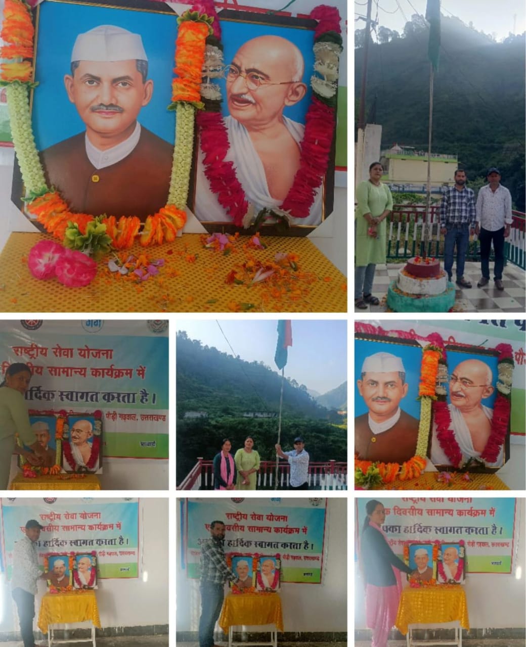 आज दिनांक 2 अक्टूबर को राजकीय महाविद्यालय पाबौ पौड़ी गढ़वाल मे गांधी जयंती के उपलक्ष में सर्वप्रथम ध्वजारोहण, गांधी जी और लाल बहादुर शास्त्री जी के छाया चित्रों पर पुष्प अर्पण और माल्यार्पण किया गया।
