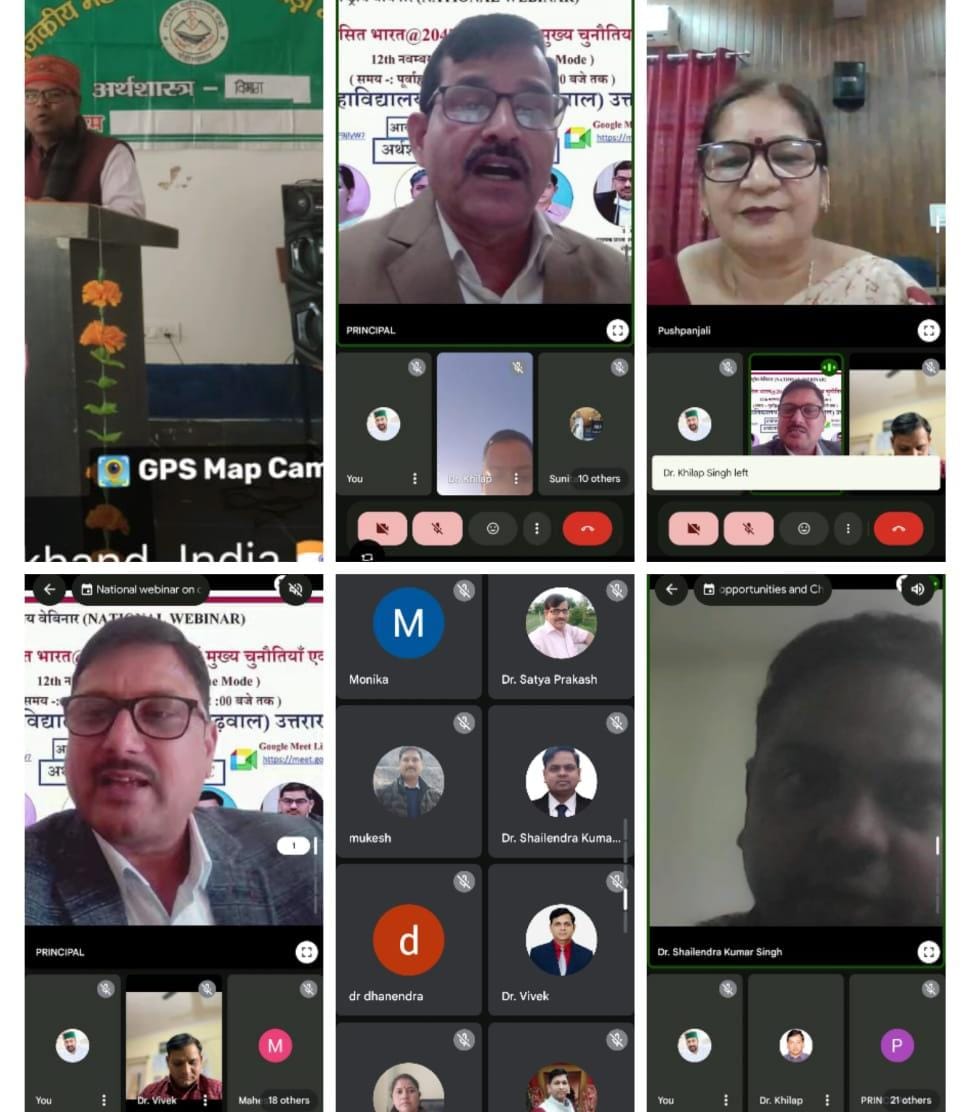 राजकीय महाविद्यालय पाबौ, पौड़ी गढ़वाल के स्मार्ट हॉल में 12 नवम्बर, 2025 को वर्तमान समय का ज्वलंत विषय “विकसित भारत @ 2047 के संदर्भ में चुनोतियाँ एवं अवसर” पर एक दिवसीय राष्ट्रीय वेबिनार का आयोजन महाविद्यालय के सरंक्षक एवं प्राचार्य प्रोफे. सत्य प्रकाश शर्मा की अध्यक्षता में अर्थशास्त्र विभाग एवं IQAC Cell के संयुक्त तत्वाथान में आयोजित किया गया।