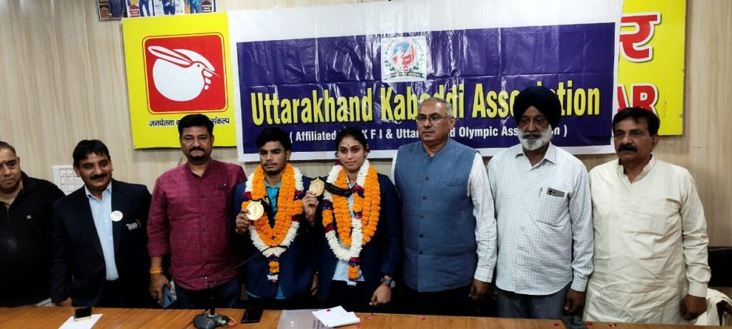 उत्तराखंड कबड्डी एसोसिशन ने प्रैस क्लब में आयोजित प्रैसवार्ता के दौरान खिलाड़ियों को सम्मानित किया। उत्तराखंड कबड्डी एसोसिएशन के अध्यक्ष महेश जोशी ने बताया कि बहरीन यूथ एशियन गेम्स में कबड्डी प्रतियोगिता में भारतीय टीम ने बालक और बालिका दोनों वर्ग में स्वर्ण पदक जीतकर देश का मान बढ़ाया है।