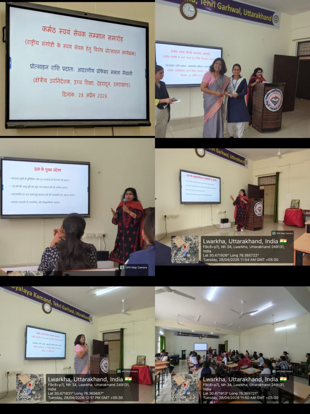 कमांद : राजकीय स्नातकोत्तर महाविद्यालय कमांद में दो महत्वपूर्ण कार्यक्रमों का भव्य और सफल आयोजन किया गया। कल दिनांक 28 अप्रैल 2026 को हुए कार्यक्रम के प्रथम सत्र में ‘विशेष संक्षिप्त पुनरीक्षण (SIR) अभियान’ के तहत एक वृहद मतदाता जागरूकता कार्यशाला आयोजित की गई।
