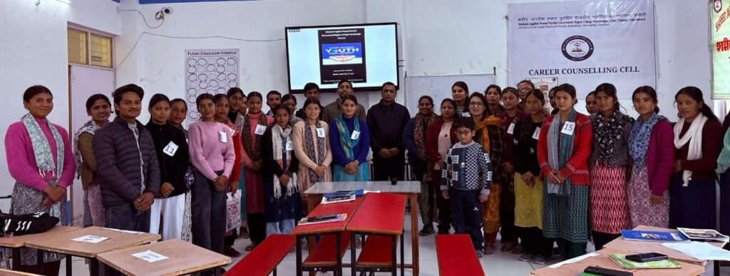 शहीद जगदीश प्रसाद पुरोहित राजकीय महाविद्यालय नंदा नगर घाट चमोली में दिनांक 22 11.2025 को युवा सांसद कार्यक्रम आयोजित किया गया।