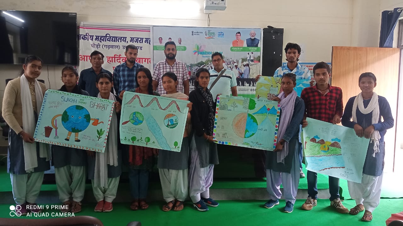 पौड़ी गढ़वाल, मजरा महादेव: राजकीय महाविद्यालय, मजरा महादेव में आज ‘राष्ट्रीय स्वच्छ गंगा मिशन’ ‘जल शक्ति मंत्रालय’ भारत सरकार के तत्त्वाधान में नमामि गंगे कार्यक्रम के अंतर्गत (दिनांक 17 सितंबर से 2 अक्टूबर 2025 ) ”स्वच्छता ही सेवा” पखवाड़ा में ‘चित्रकला’ व ‘निबंध लेखन प्रतियोगिता’ का आयोजन किया गया।