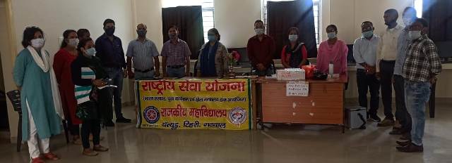 यह आयोजन क्रीड़ा प्रभारी डॉ राजेश सिंह एवं राष्ट्रीय सेवा योजना प्रभारी संदीप कश्यप के निर्देशन मे सामुदायिक स्वास्थ्य केंद्र की फार्मासिस्ट शोभा, डाटा ऑपरेटर संदीप नेगी एवं एएनएम अनीता के सहयोग से कंप्यूटर सेंटर में गया किया गया। जिसमें महाविद्यालय के छात्रों, शिक्षकों एवं कर्मचारियों के साथ-साथ महाविद्यालय द्वारा अधिग्रहित गांव बांसी के लोगों ने कोविड-19 की पहली डोज लगवाई।