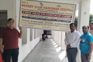 हरिद्वार : रोटरी क्लब हरिद्वार सेंट्रल ने प्रेम हॉस्पिटल सुपर स्पेशियलिटी एंड ट्रॉमा सेंटर तथा शर्मा इमेजिंग ज्वालापुर, हरिद्वार के सहयोग से रविवार, 24 अगस्त 2025 को दीप गंगा रेज़ीडेंट सोसायटी, सिडकुल हरिद्वार में एक निःशुल्क चिकित्सा शिविर का सफल आयोजन किया।