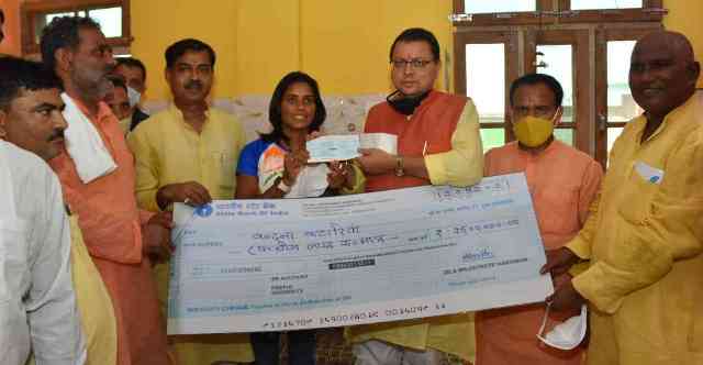 संजीव शर्मा,एनटीन्यूज़: मुख्यमंत्री पुष्कर सिंह धामी ने भारतीय महिला हॉकी खिलाड़ी सुश्री वन्दना कटारिया के रोशनाबाद, हरिद्वार स्थित आवास पर जाकर टोकियो ओलंपिक में वंदना के शानदार प्रदर्शन पर उन्हें बधाई दी। मुख्यमंत्री पुष्कर सिंह धामी ने सुश्री वन्दना कटारिया को 25 लाख रूपये का चेक प्रदान किया।