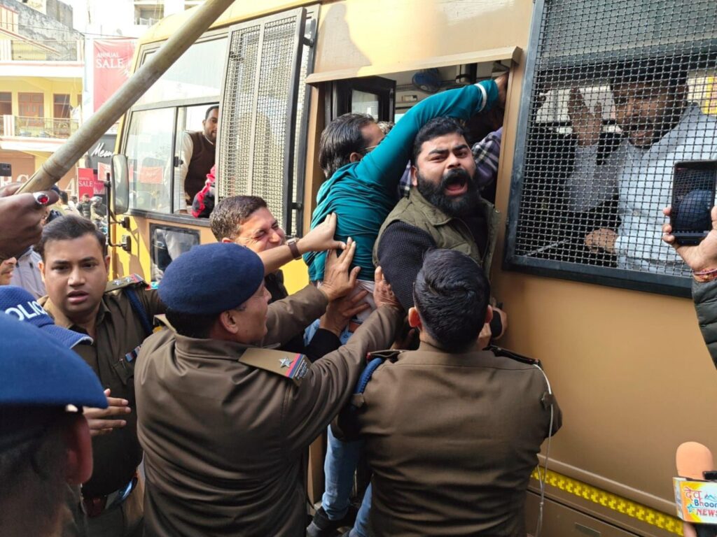 पुलिस के रोकने पर कार्यकर्ता सड़क पर बैठ गए और प्रदर्शन करने लगे। बाद में पुलिस ने सभी को गिरफ्तार कर लिया। इस दौरान कार्यकर्ताओं और पुलिस के बीच धक्का मुक्की भी हुई।