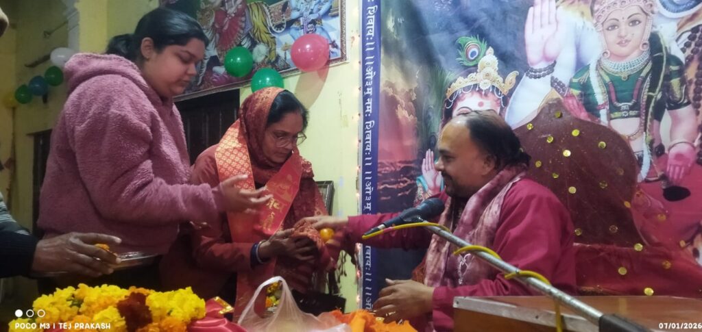 हरिद्वार, बीएचईएल सेक्टर 1: सनातन ज्ञानपीठ शिव मंदिर सेक्टर 1 भेल रानीपुर हरिद्वार प्रांगण मे लगातार चली आ रही 57 वी श्री राम जानकी कथा के चौथे दिवस 8 जनवरी 2026 कथा में परम पूज्य आचार्य महंत प्रदीप गोस्वामी महाराज जी ने प्रभु श्री राम के बाल्यकाल,उनकी शिक्षा और विश्वमित्र के साथ श्रीराम,लक्ष्मण का वन मे जाने और ताड़का वध का दिव्य प्रसंग सुनाया ।