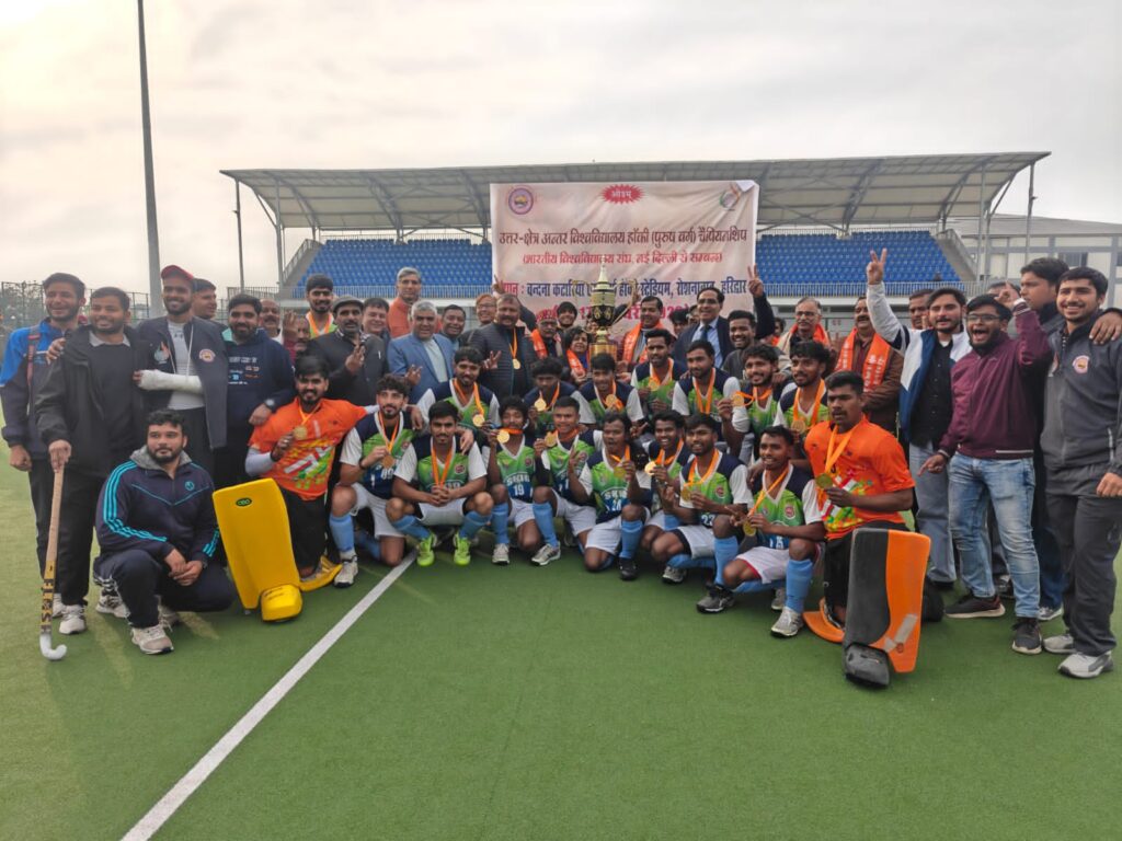 हरिद्वार-17 जनवरी, 2026 वंदना कटारियॉ स्टेडियम परिसर मे सात दिनों से चल रही उत्तर-क्षेत्र अन्तर वि0वि0 हॉकी चैम्पियनशिप मे गुरूकुल कंगडी समवि0वि0 ने एल0पी0यू0, फग्वाडा को 5-2 से परास्त करके चैम्पियनशिप ट्राफी पर कब्जा किया।