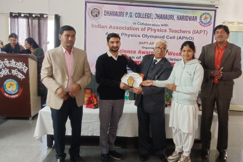 हरिद्वार: धनौरी पी.जी. कॉलेज, धनौरी द्वारा Indian Association of Physics Teachers – Asian Physics Olympiad (IAPT–APhO) के सहयोग से राष्ट्रीय विज्ञान दिवस के उपलक्ष्य में आयोजित ‘विज्ञान जागरूकता सप्ताह’ (23 फरवरी से 28 फरवरी, 2026) का आज भव्य समापन समारोह (Valedictory Ceremony) के साथ सफलतापूर्वक संपन्न हुआ।