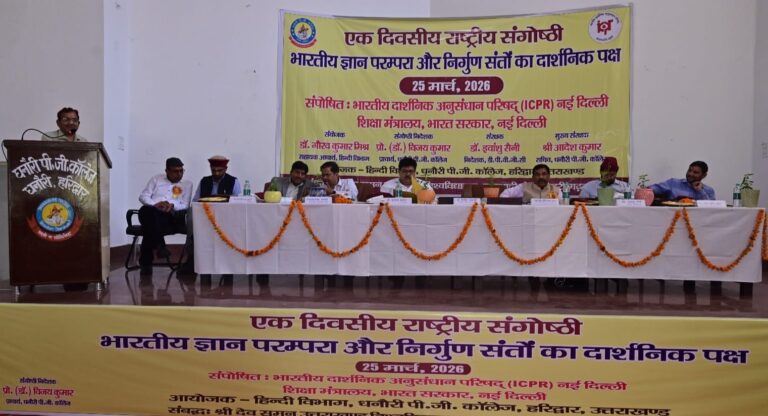 हरिद्वार: धनौरी पी.जी. कॉलेज, धनौरी (हरिद्वार) में हिंदी विभाग द्वारा विश्व दर्शन दिवस के उपलक्ष्य में दिनांक 25 मार्च, 2026 को एक दिवसीय राष्ट्रीय संगोष्ठी का आयोजन किया गया।