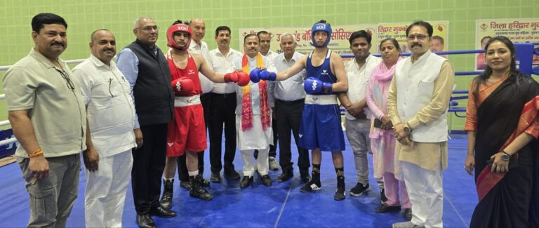 हरिद्वार, 4 अप्रैल 26: उत्तराखंड बॉक्सिंग एसोसिएशन के तत्वावधान में योगस्थली स्पोटर्स स्टेडियम रोशनाबाद में आयोजित राज्य स्तरीय बॉक्सिंग प्रतियोगिता के दूसरे दिन के मुकाबलों का शुभारंभ मुख्य अतिथी राज्यमंत्री ओमप्रकाश जमदग्नि ने खिलाड़ियों का परिचय प्राप्त किया। दूसरे दिन पुरूष वर्ग के मुकाबलों में पिथौरागढ़ के सक्षम ने हिमांशु बोरी को हराकर जीत हासिल की।