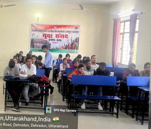 आज दिनांक 15 नवंबर 2025 राजकीय स्नातकोत्तर महाविद्यालय मालदेवता रायपुर देहरादून में युवा संसद...