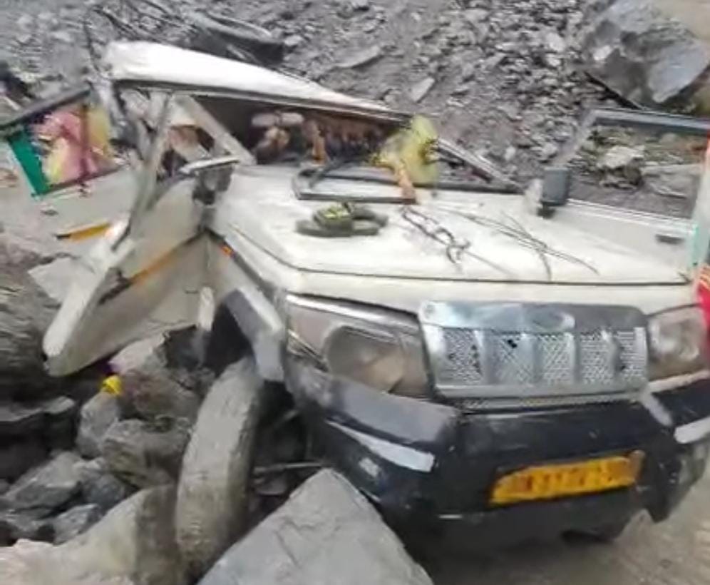 रुद्रप्रयाग: गौरीकुण्ड जा रही मैक्स बोलेरो पर पहाड़ी से बड़ा पत्थर गिरने से 2...